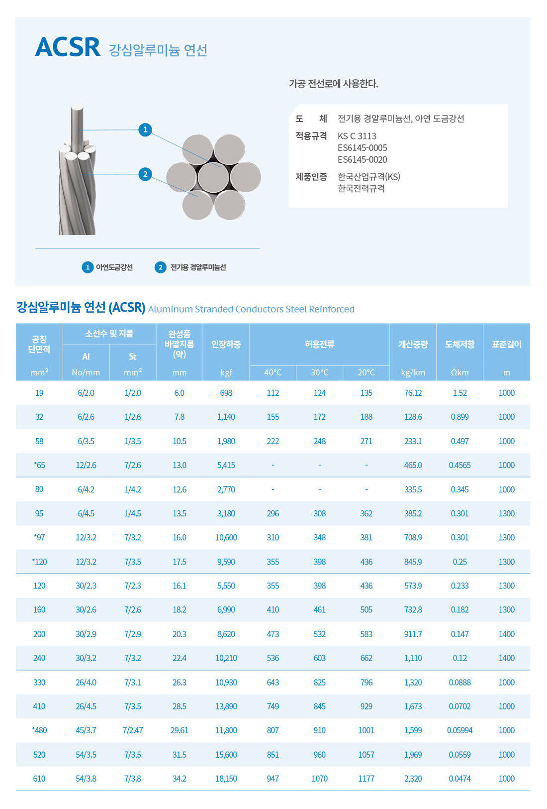 - 가공 송전선 - 강심 알루미늄 연선(ACSR)