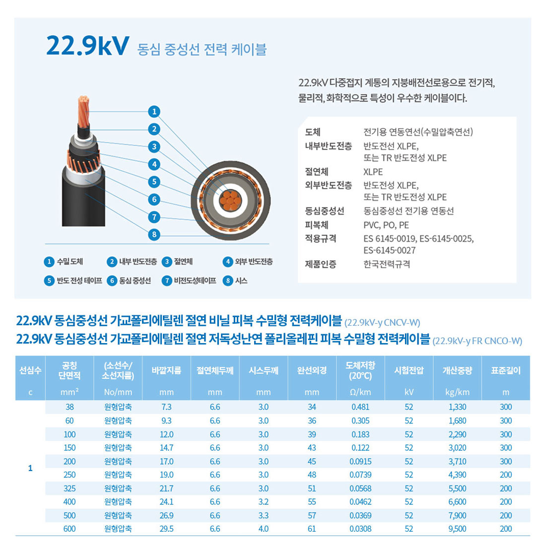 - 특고압전력 케이블 - 22.9kV-y CNCV-W, 22.9kV-y FR CNCO-W