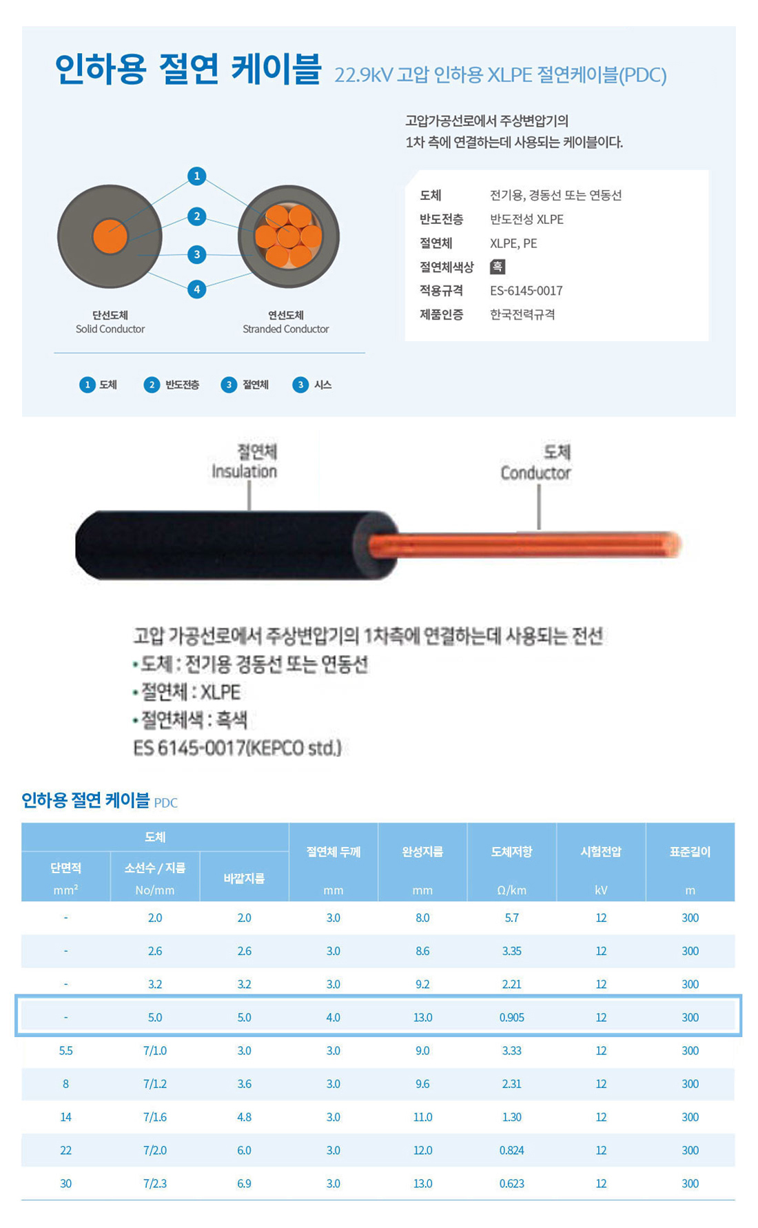 - 특고압전력 케이블 - 22.9kV-y CNCV-W, 22.9kV-y FR CNCO-W