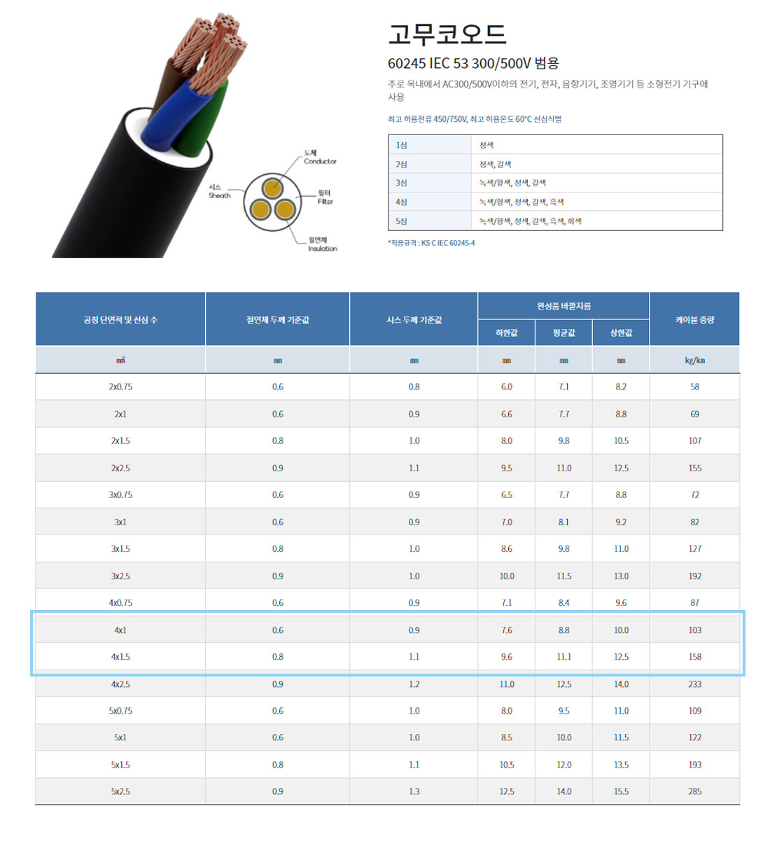 - 300/600V 고무절연 전선(코드) - 고무코오드, H07RN-F