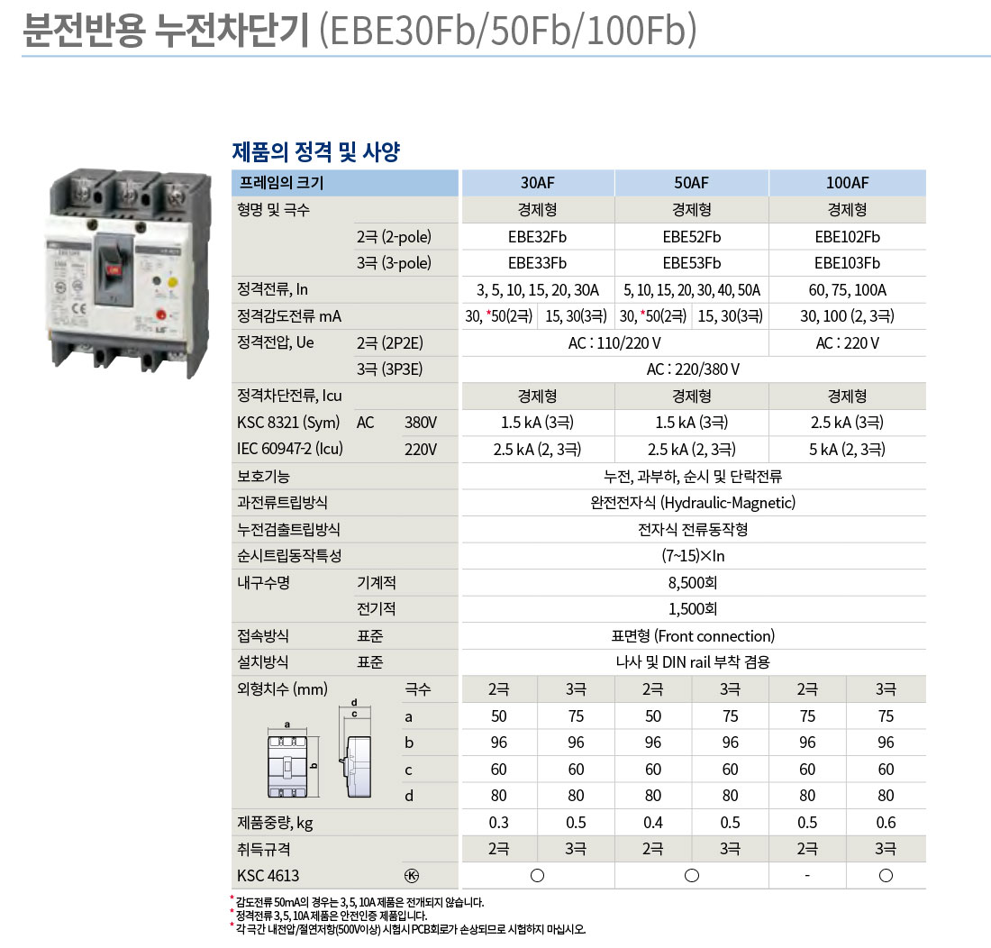 - LS산전 분전반용 누전차단기 Fb - LS산전 분전반용 누전차단기 EBE Fb, EBS Fb