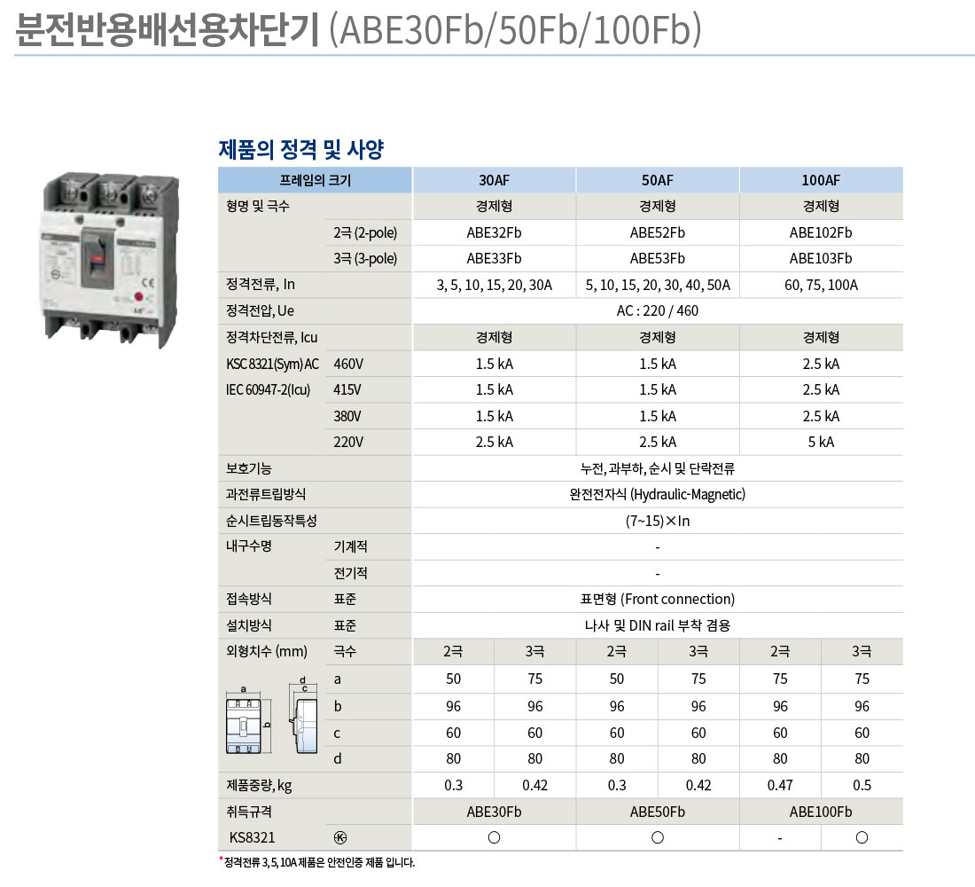 - LS산전 분전반용 배선차단기 Fb - LS산전 분전반용 배선차단기 ABE Fb, ABS Fb