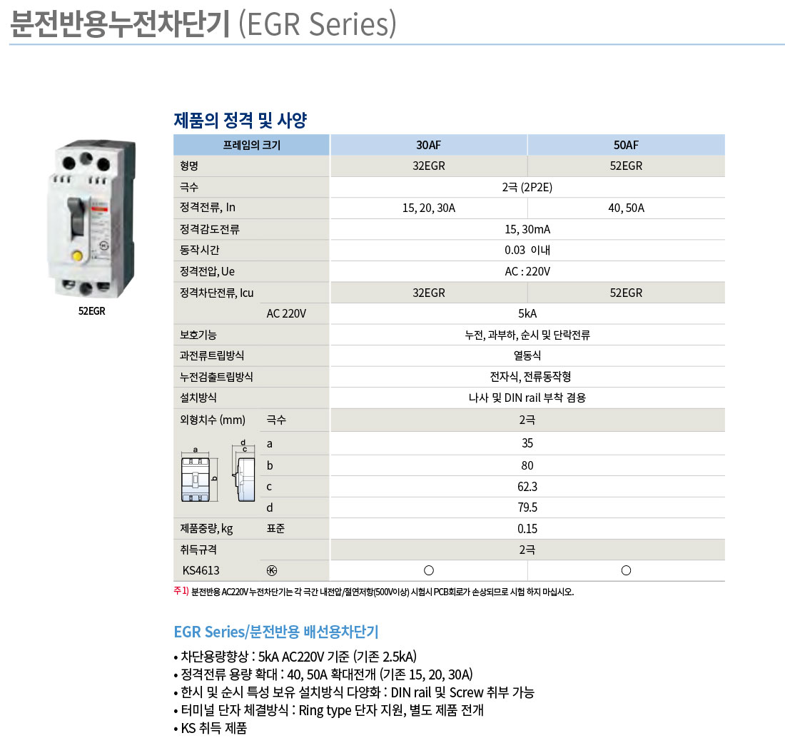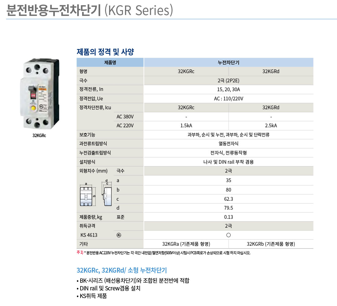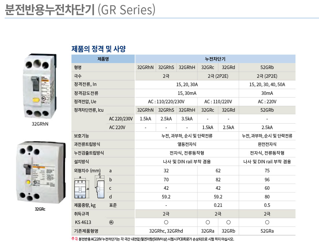 - LS산전 분전반용 누전차단기 - LS산전 분전반용 누전차단기 GR, KGR, EGR