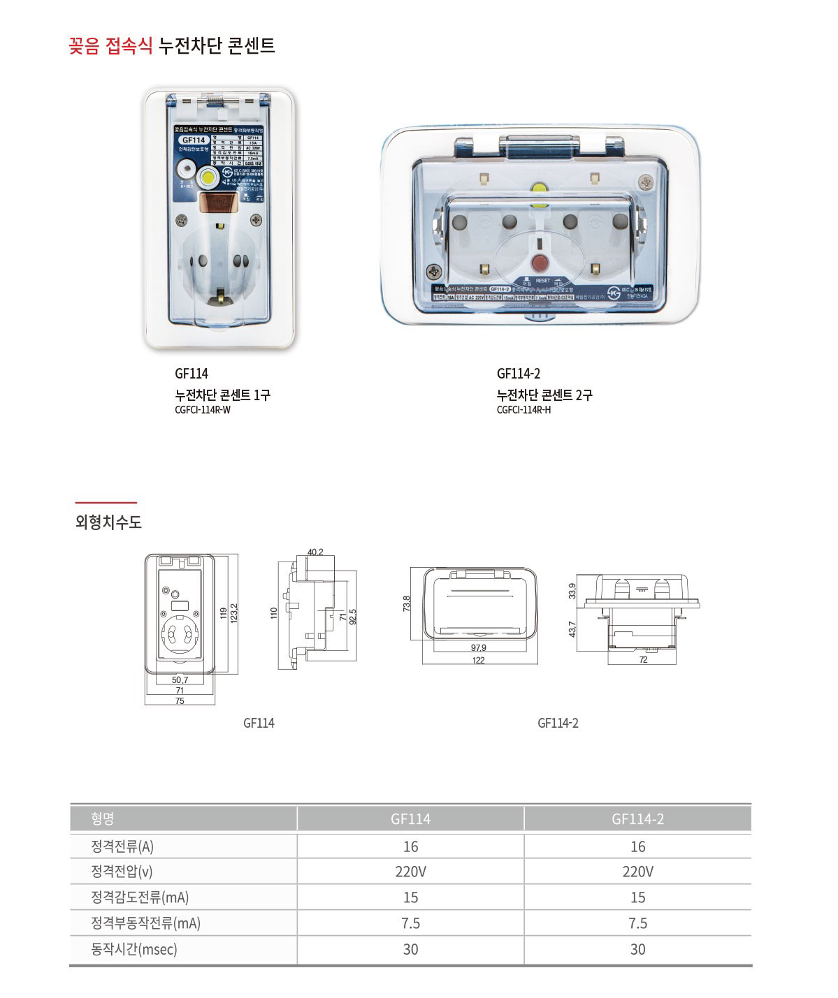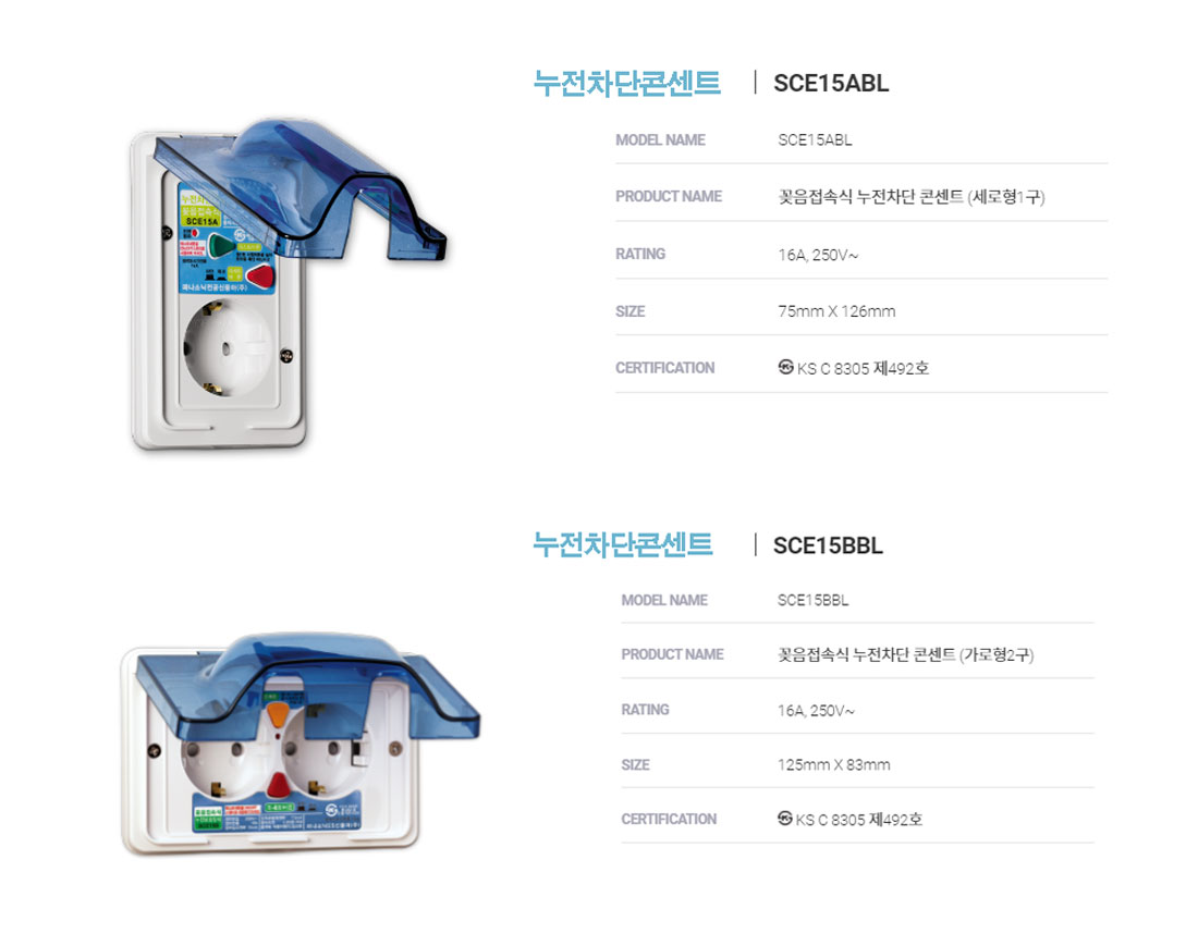 - 누전차단콘센트 - 제일전기공업, 파나소닉ES신동아, 서울산전, 일신전기