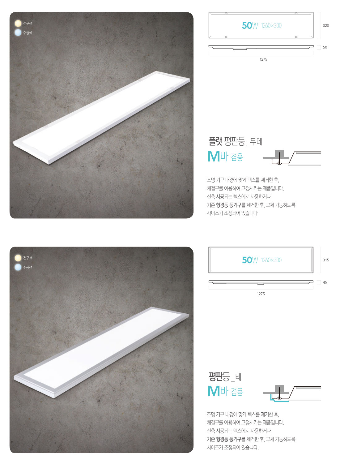 - 평판 매입등 - LED 매입 M바 T바 담파
