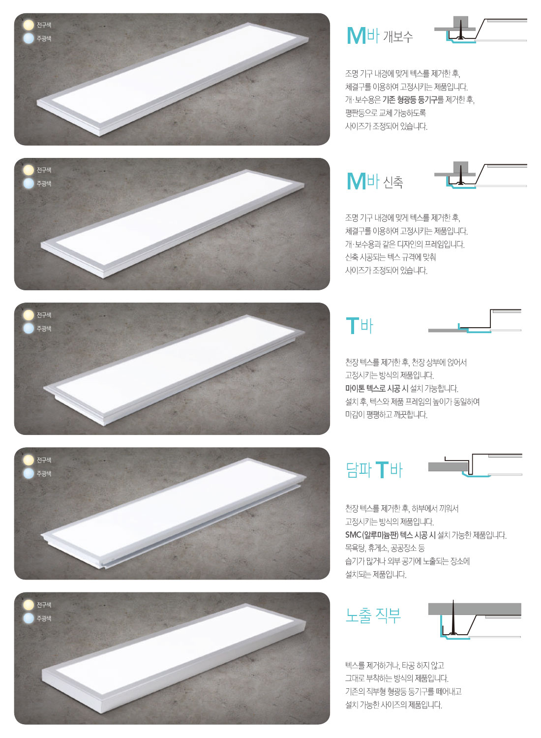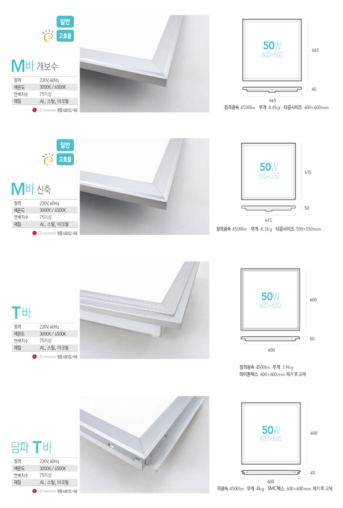 LED 매입 M바 T바 담파