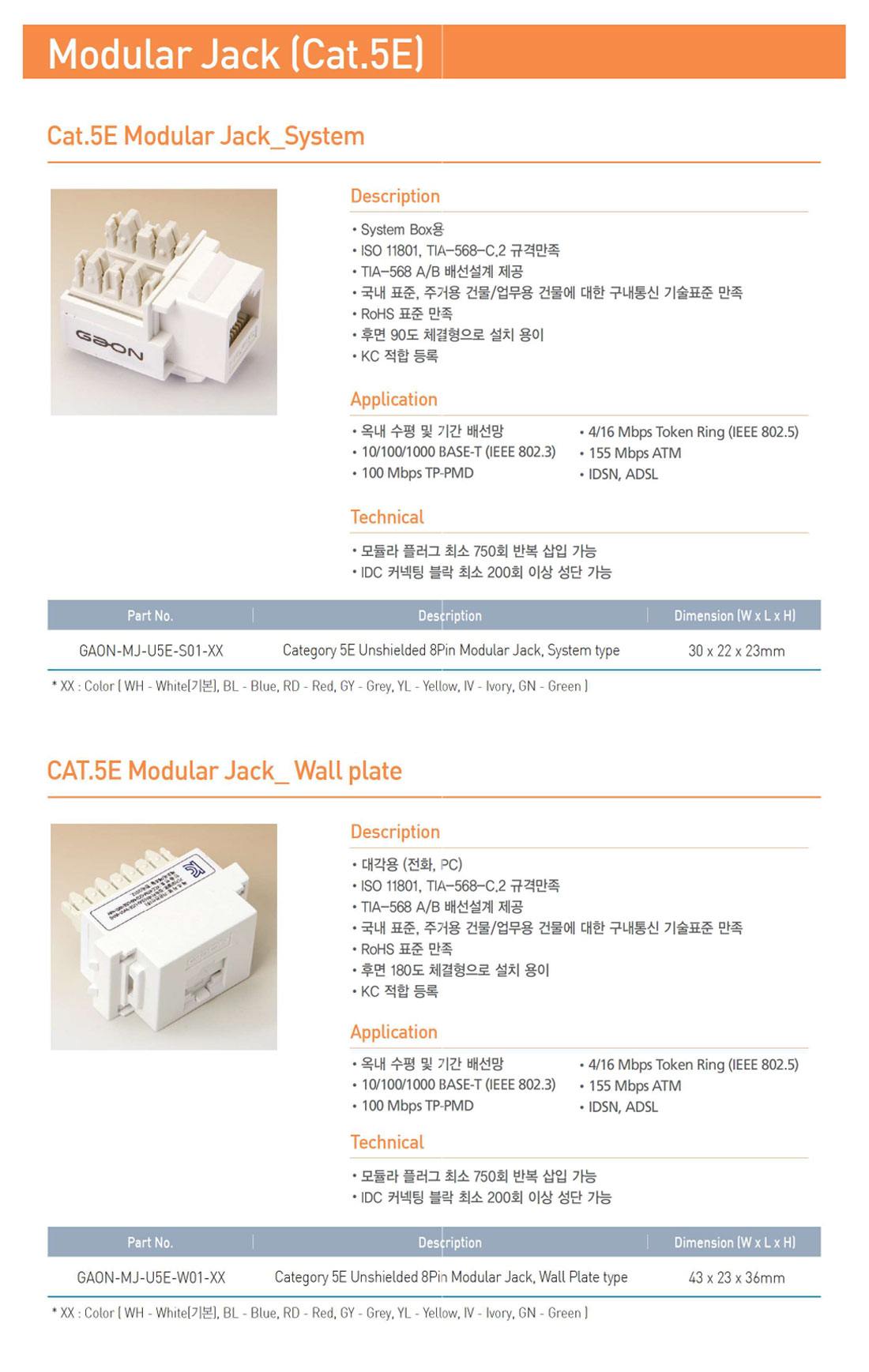 가입자 보호기, 110블럭, 모듈러, RJ-45
