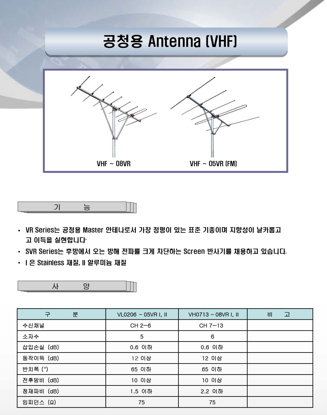 - 안테나 - 공청용 및 위성안테나