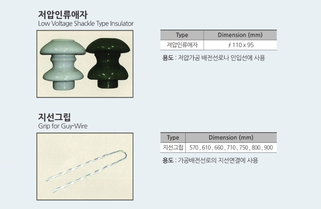 - 래크, 애자 - 래크, 저압인류애자, 지선그립, 인류스트랍