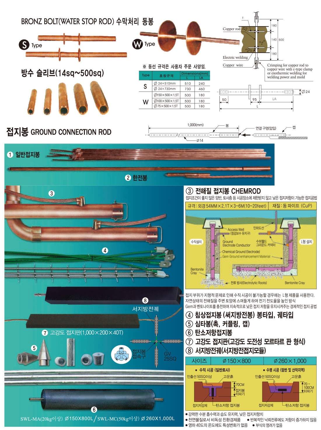 - 접지봉, 접지커넥터, 어스론 - 접지동봉, 접지저항저감제