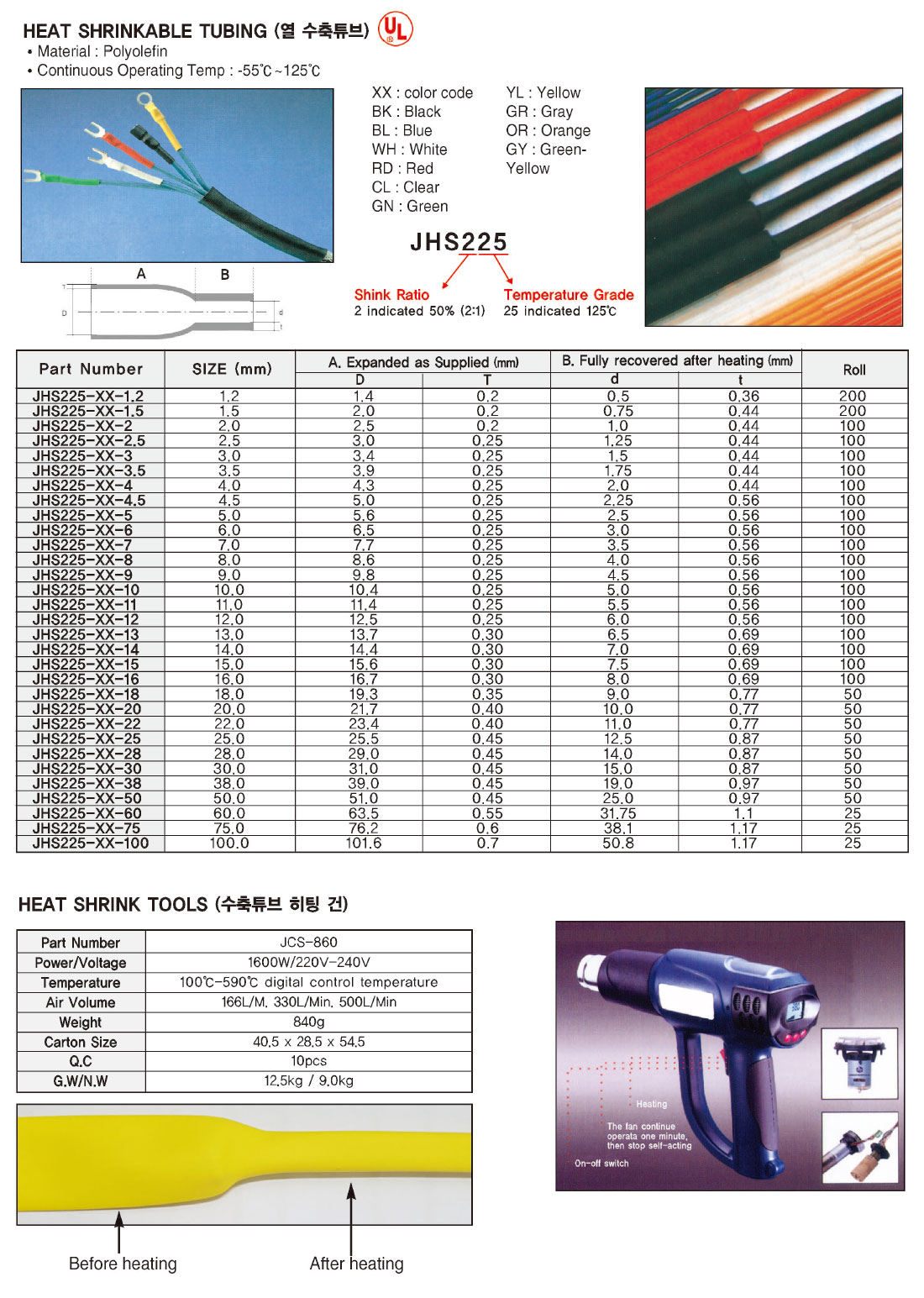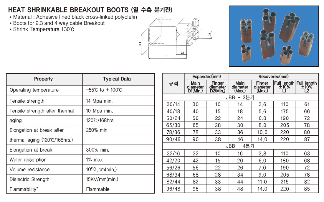 단자캡, 수축튜브, 수축관, 분기관