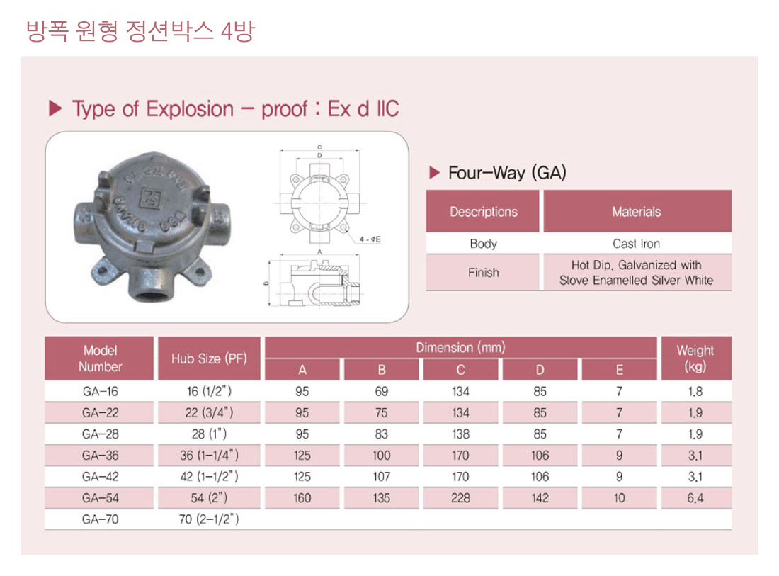 - 방폭 배관 부속 - 주철곤지레다, 방폭 엘보, 방폭 티, 씰링휘팅