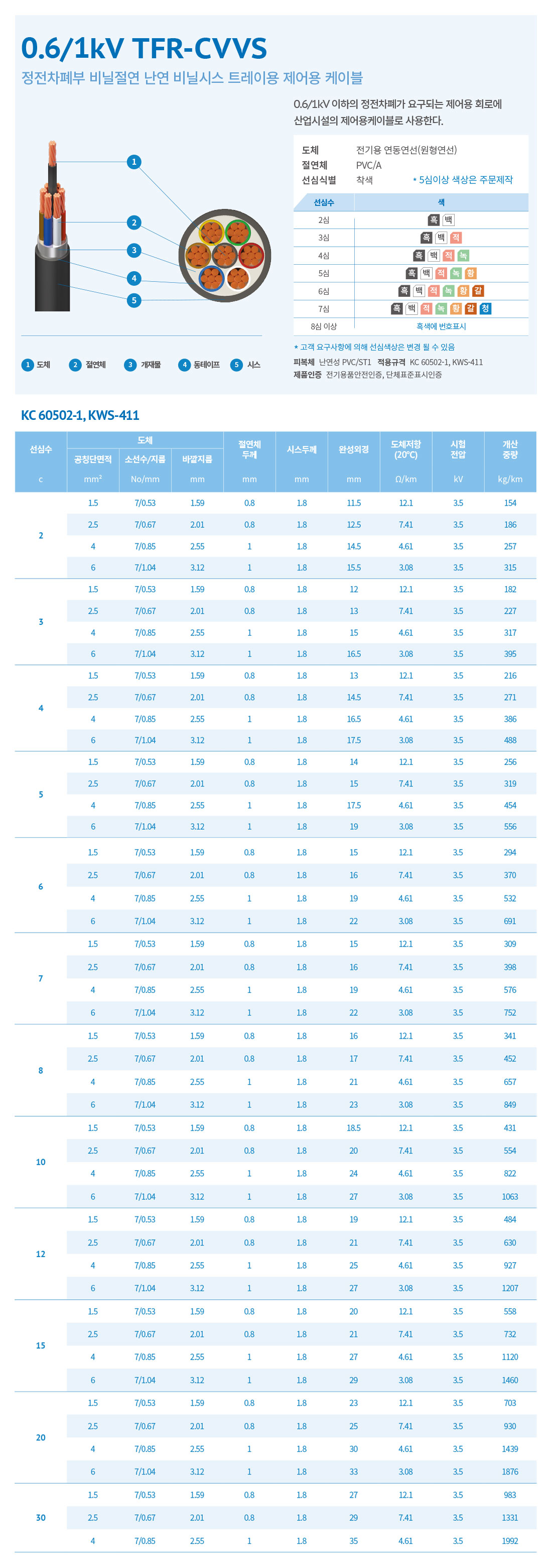 - 동선편조 차폐형 - 0.6/1kV TFR-CVV-SB