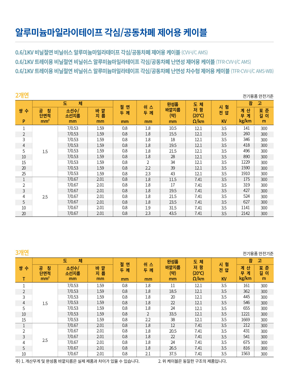 - 알루미늄 마닐라테이프 각심/공동차폐형 - 0.6/1kV TFR-CVV-I/C-AMS